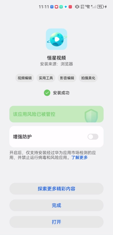 屏幕上会显示“安装完成”的提示,此时点击“打开”按钮就能开始体验了。要是还想了解其他相关内容,不妨点击“探索更多精彩内容”看看。