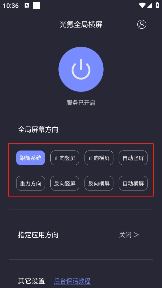 开启之后,可以根据自身需求设置全局屏幕方向。