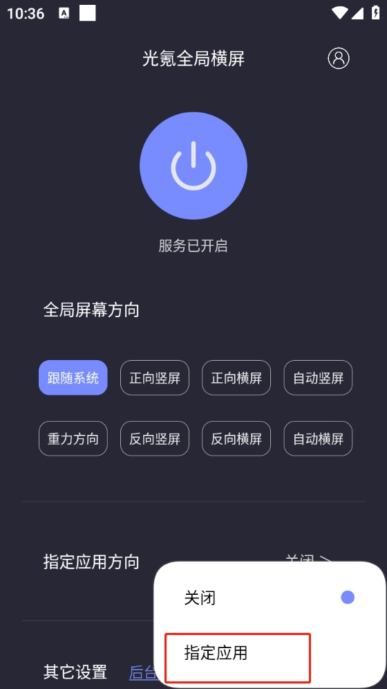 也可以制定某些应用进行屏幕方向控制。