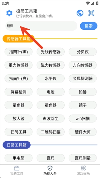 在功能大全界面里,你可以借助搜索功能找到所需的功能,比如搜索“翻译”这个关键词就能快速定位到对应的功能。