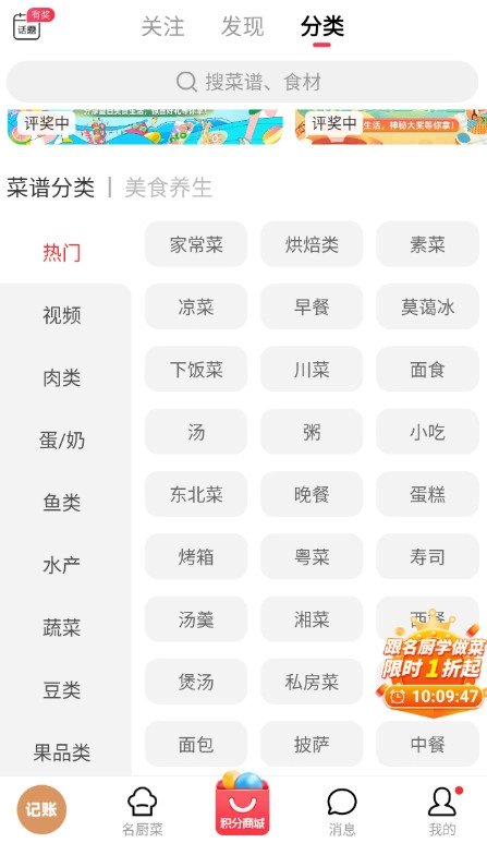 如家常菜可以查看相关的菜谱做法,可以查看哪些有视频的,或者是别人做的笔记
