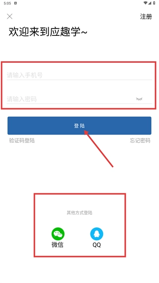 可以选择填写手机号和密码后点击【登录按钮】,也可以通过【微信/QQ】等其他方式进行登录。