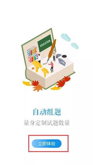 在自动组题介绍页面,点击【立即体验】按钮,即可进入应用的“我的”页面。