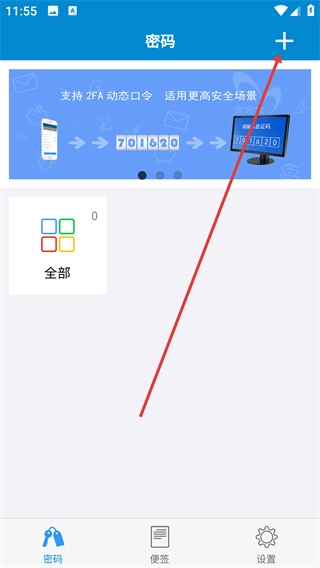 在密码管理界面点击右上角的“+”按钮,会弹出功能操作选项菜单。