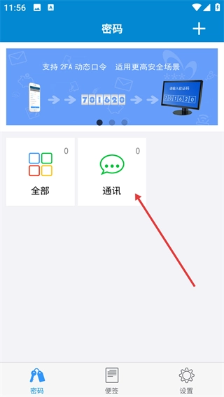 创建完成后,界面会呈现新的【通讯】分类模块,该模块可用来对相应类型的密码信息进行归类。