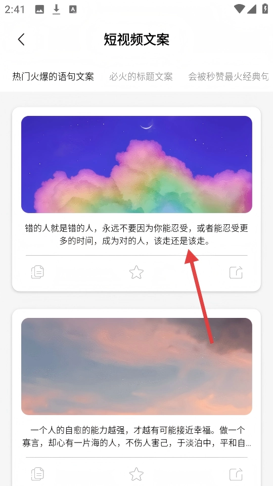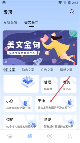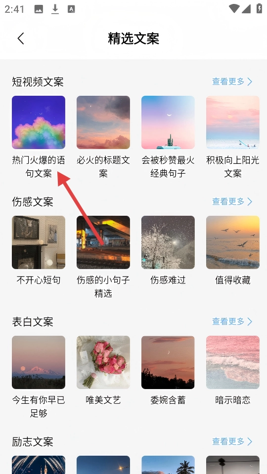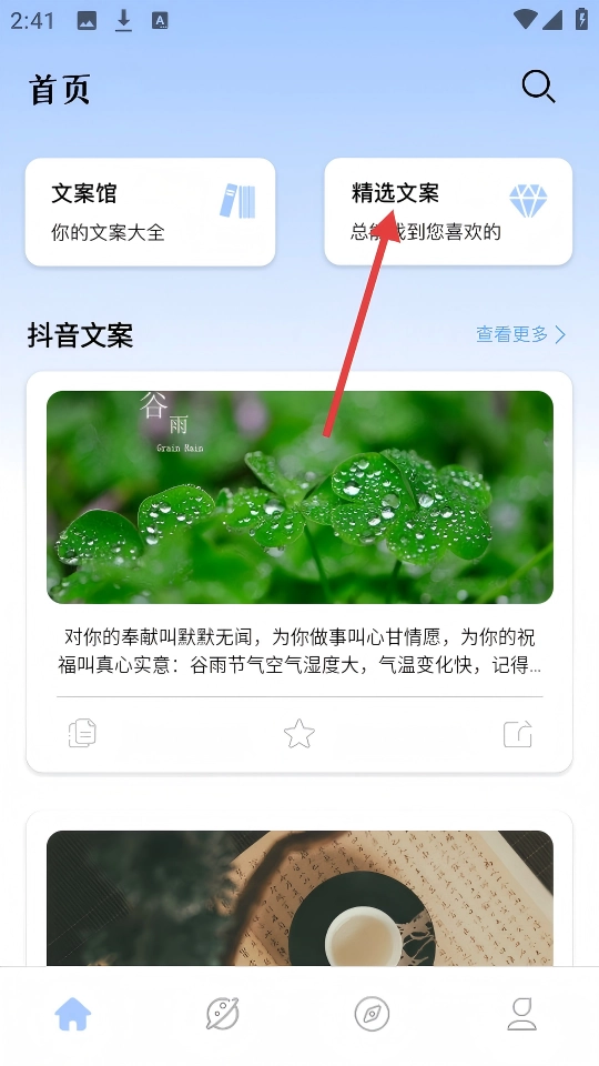 在首页点击【精选文案】,进入精选文案页面。