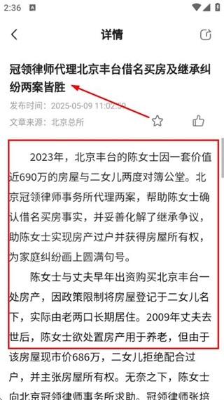在房产纠纷页面找到目标案例并点击,即可进入该案例的详情页面。
