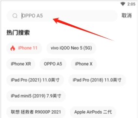 点击页面上方的搜索框,输入手机型号进行搜索;