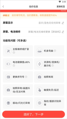 依次选择手机的屏幕显示、维修情况、账号锁等状况;