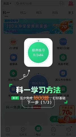接着点击【顺序练习】,进入习题练习环节(至少完成1800道题目,以此夯实学习基础)。