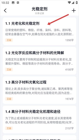 进入【光稳定剂】的内容列表页面后,点击【光老化和光稳定剂】这篇文章,即可阅读具体的科普内容。