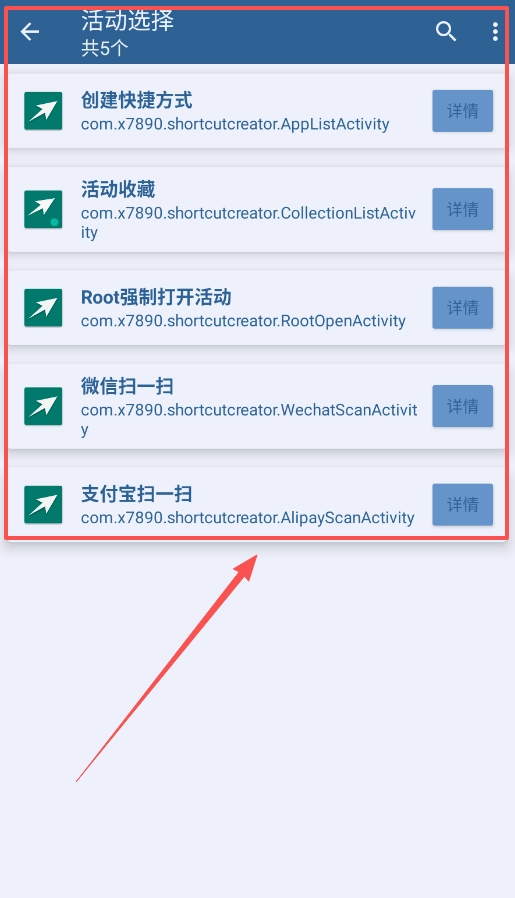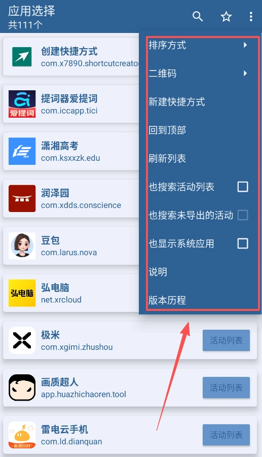 二、进入并选定具体活动。点击应用栏目下的“活动列表”,您将看到该应用中所有能够创建快捷方式的活动。