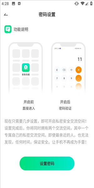 选择密码设置后,即可开启私密安全空间用于交流,届时会同时拥有两个空间,能更有效地保障文件安全。