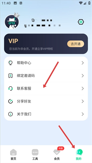 打开“我的”页面,找到并点击“联系客服”选项,即可进入客服服务页面。