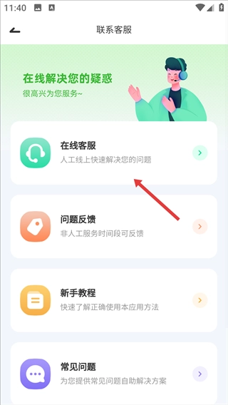 在联系客服的页面中,点击“在线客服”这一选项,即可进入和人工客服交流的聊天界面。