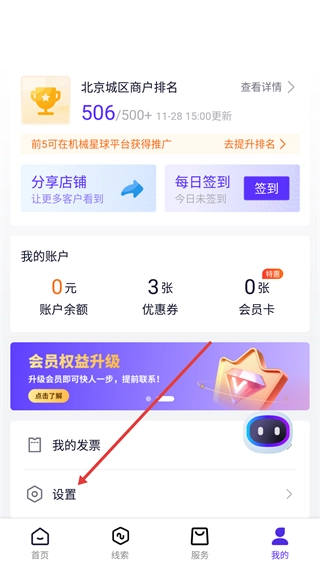 在设置页面,找到并点击【账号注销】选项,即可进入商户账号注销流程,不过需要先满足注销的前置条件。