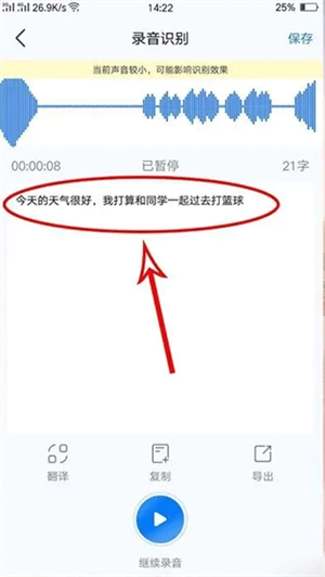 转写完成后,可点击“翻译”按钮将中文转换为英文。