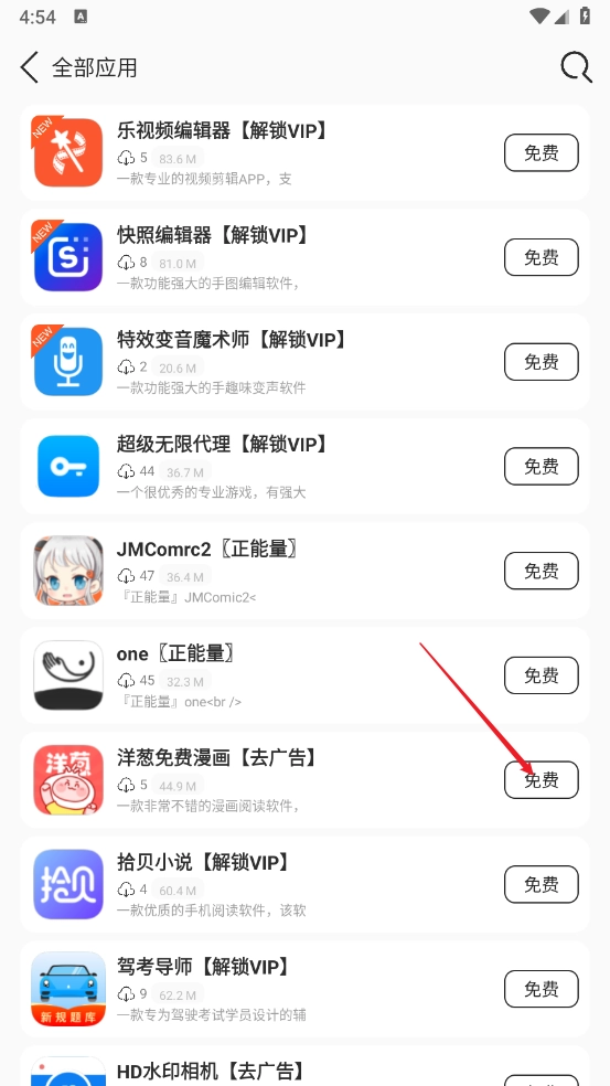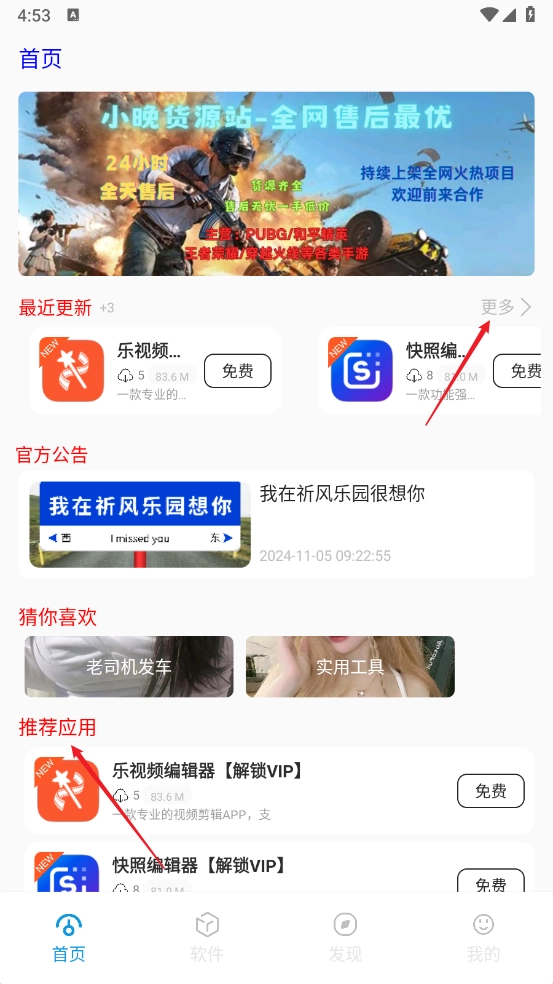 进入首页后,只需滑动页面就能浏览热门免费软件,点击“更多”按钮即可进入详情页面。