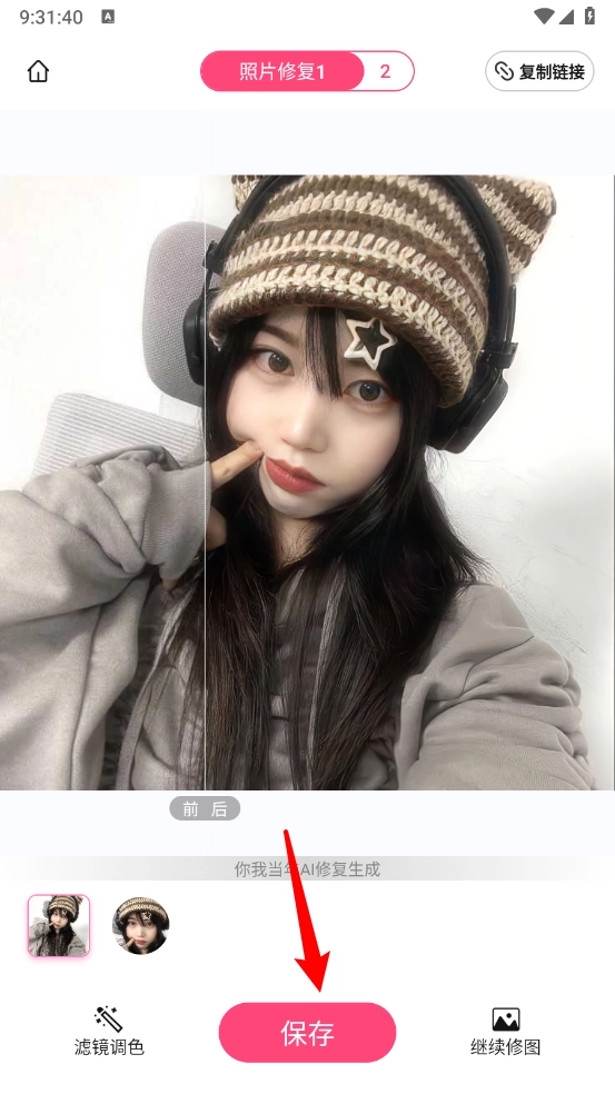 等待修复完成后,可对修复前后效果进行对比,点击底部的“保存”按钮即可。