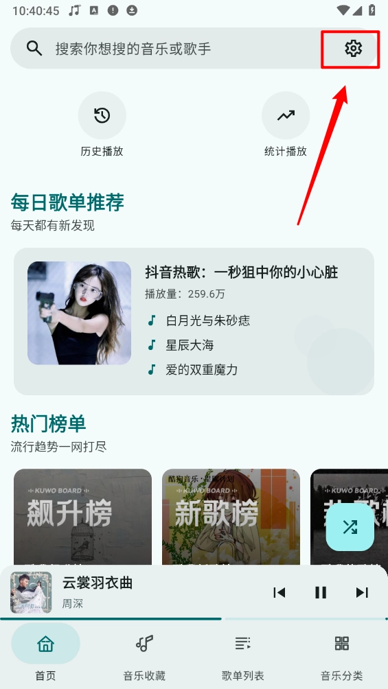 同时还可以输入关键字搜索你想搜的音乐或歌手。