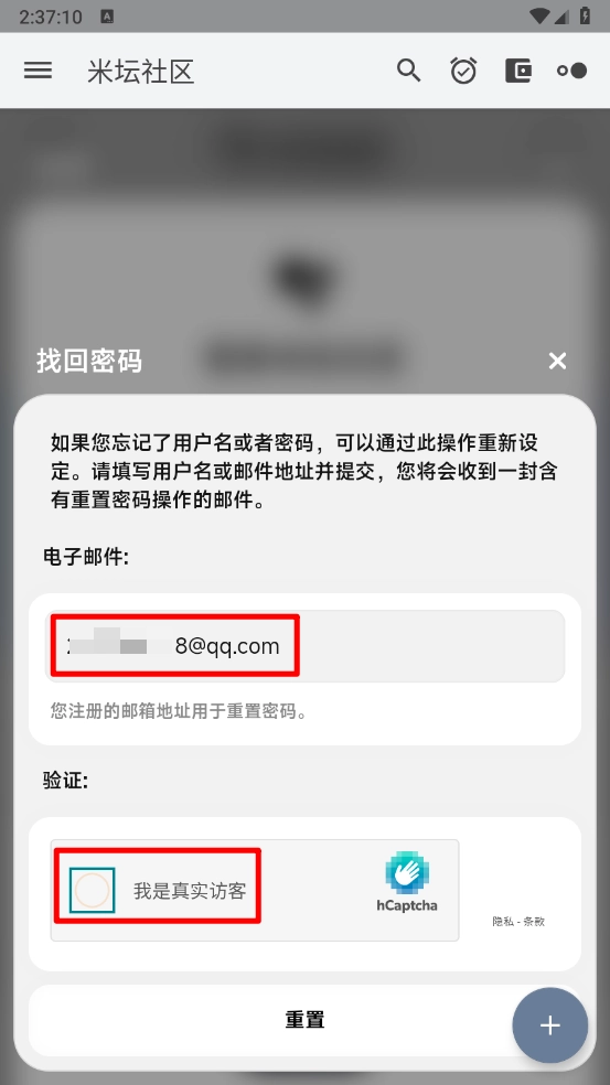 进入系统后填写电子邮箱地址完成验证,验证通过后点击“重置”按钮。