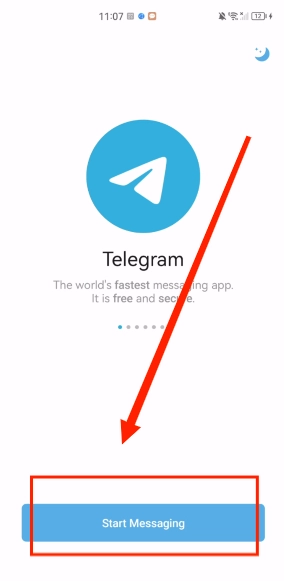 打开telegeram软件后,直接点击“Start Messaging”按钮即可进入下一步操作。