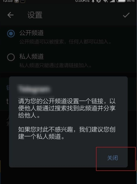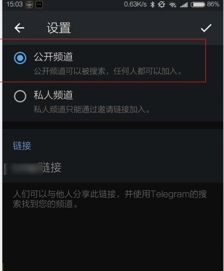 输入完成后点击右上角的对勾,随后会要求选择频道类型,可选项为公开频道和私密频道。
