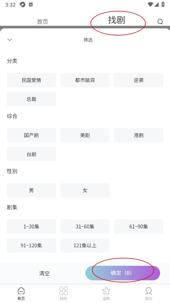 打开软件后,点击“找剧”入口进入,如图所示,可依据分类、剧集、综合等条件进行筛选。