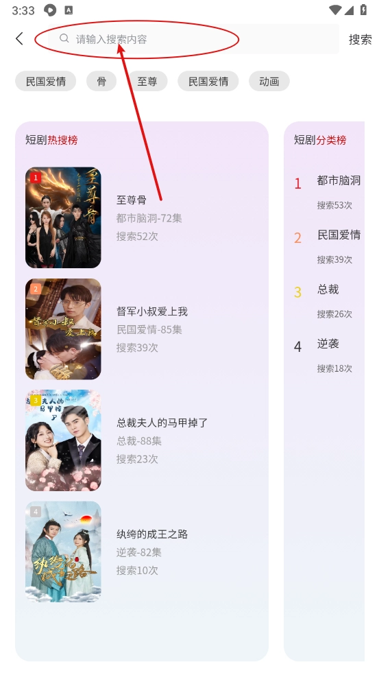 然后支持一键在搜索框中精准搜索喜欢的短剧资源。