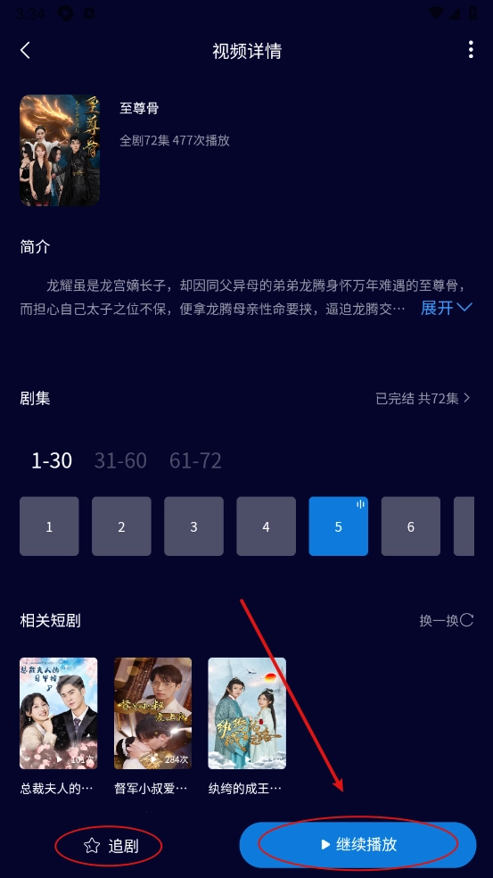 点击“意见”进入短剧详情页,就能点亮“追剧”按钮,这样下次观看会更方便。