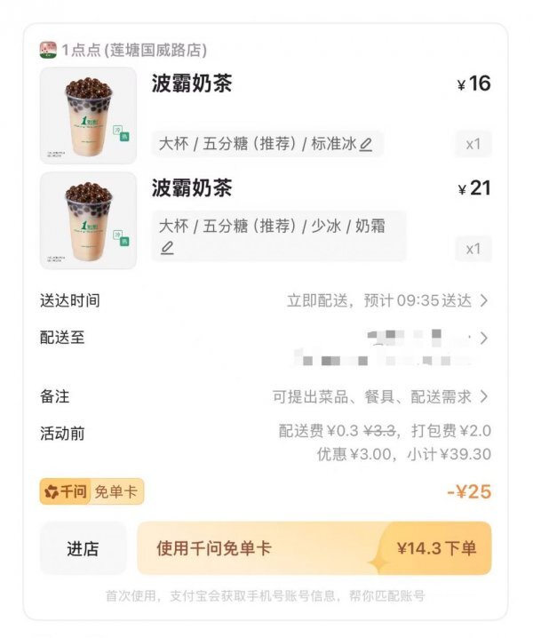新人注册即送25 元无门槛免单卡,可直接用于点奶茶(覆盖喜茶、奈雪、瑞幸等主流品牌)