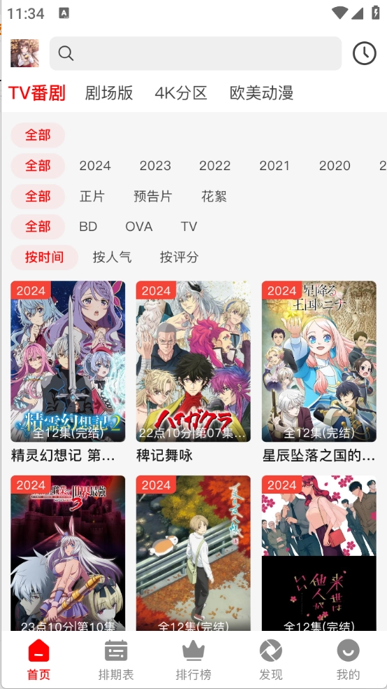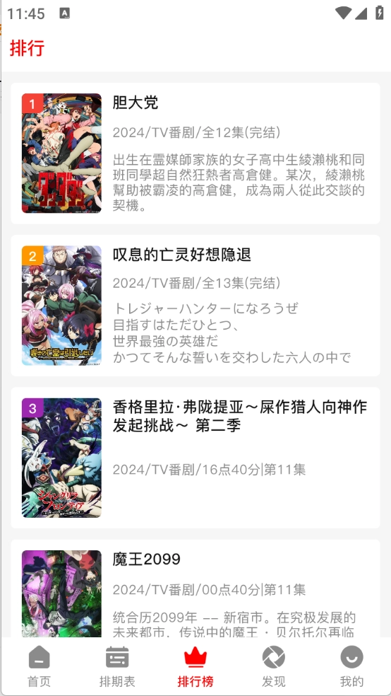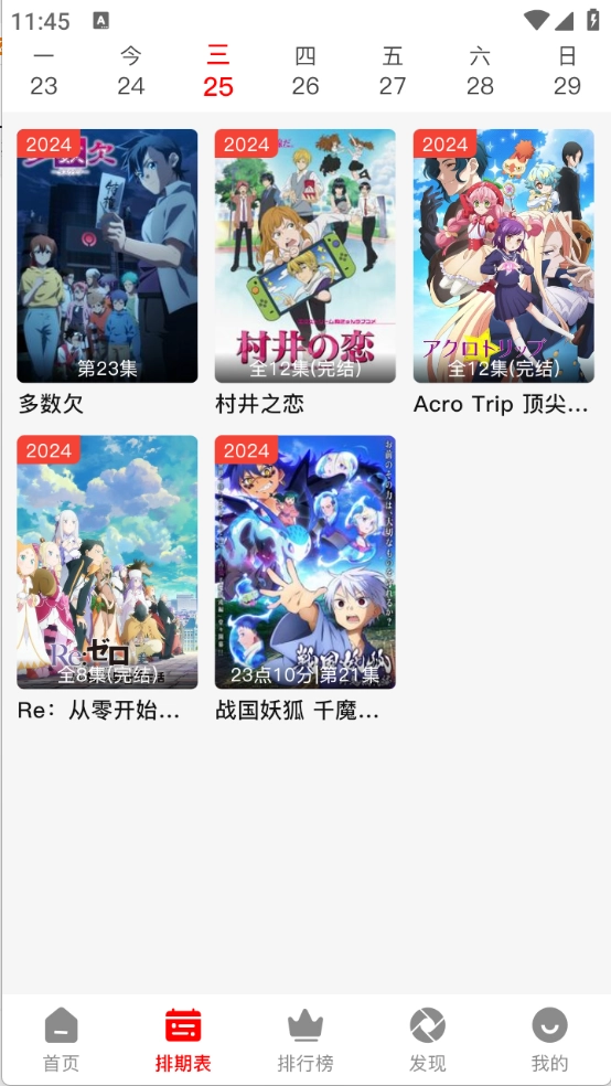 排期表会展示每天更新的动漫情况。