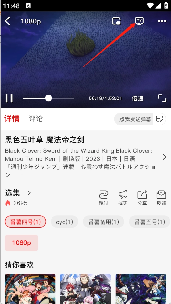 任意打开一部动漫进入播放页面。