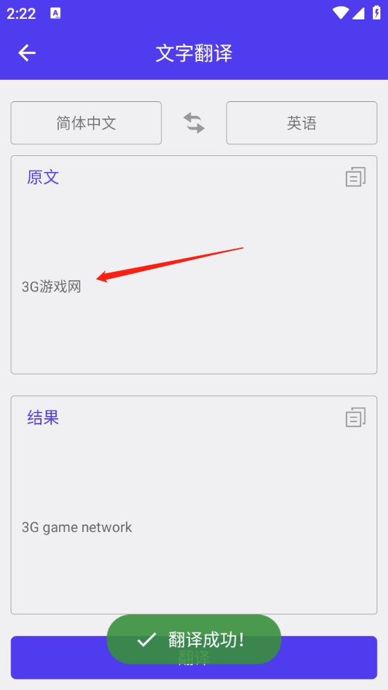 在输入框里填写需要翻译的内容,点击“翻译”按钮后就能看到结果啦。