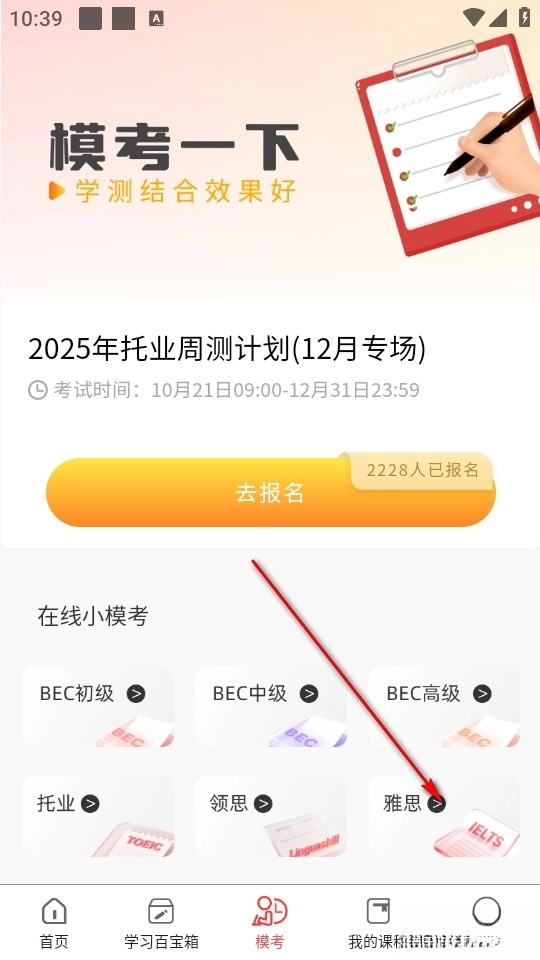 在模考界面找到雅思,点击进入。