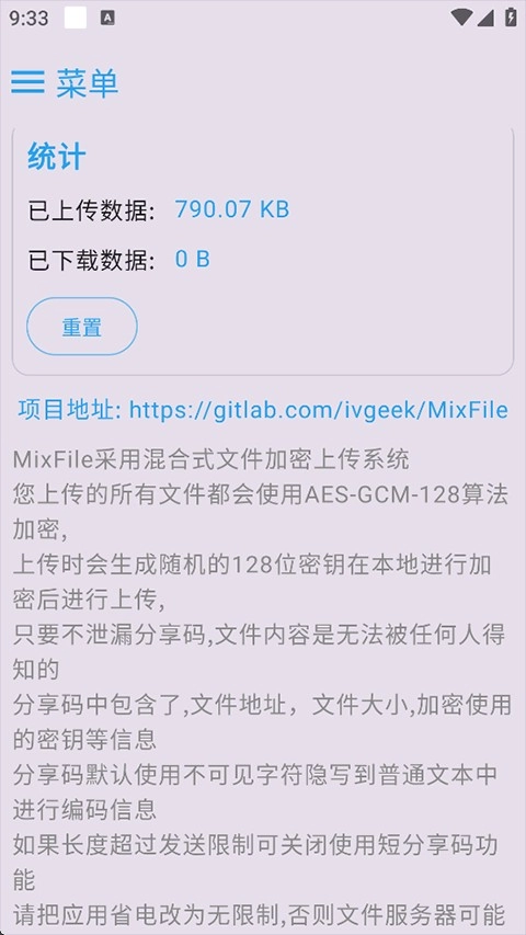 上传完成后,密钥文件地址、文件大小等信息会附加在分享码里。
