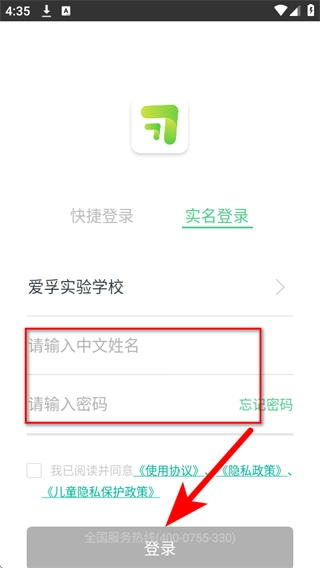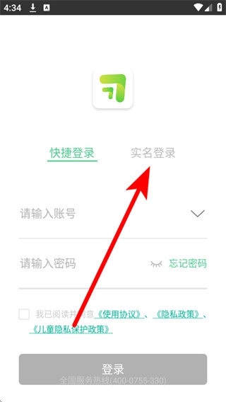 在实名登录页面输入账号和密码,勾选对应的协议后,点击登录按钮即可完成账号登录操作。