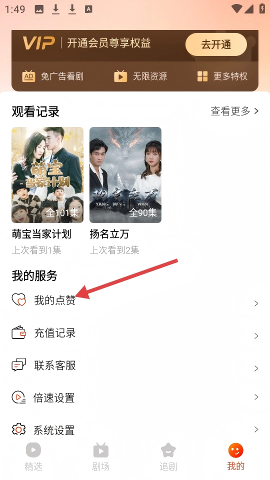 在点赞页面,点击【萌宝当家计划第1集】,即可进入该剧集的播放页面。