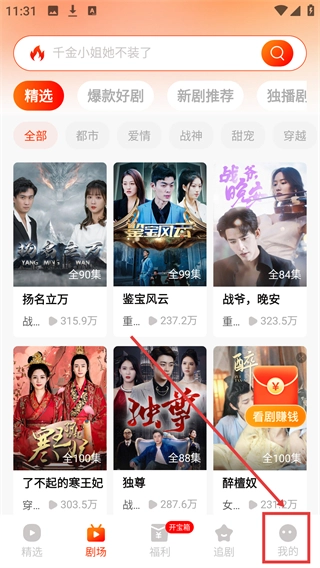 进入【剧场】页面后,点击底部的【我的】按钮,就能进入个人中心页面。