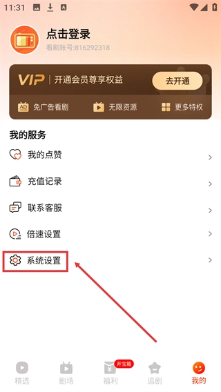 进入【我的】页面后,在【我的服务】板块找到【系统设置】选项,点击该选项就能进入对应的设置页面。