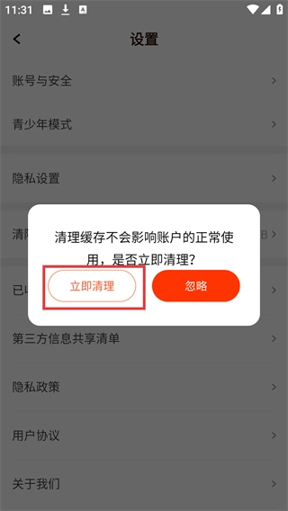 当你点击【清除系统缓存】选项后,页面会弹出一个确认弹窗,该弹窗会提示此次清理操作不会对账户的正常使用造成影响,此时你只需点击弹窗中的【立即清理】按钮,就能完成系统缓存的清理工作。