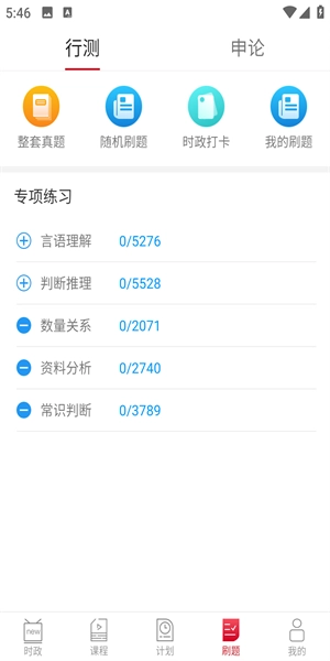 点击界面右下角的刷题入口,在这里你能够查看完整的真题套卷、进行随机题目练习以及开展专项内容训练。