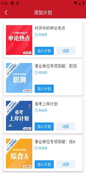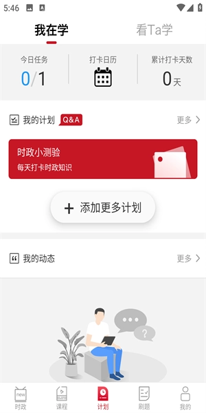 点击“计划”选项可制定个人学习计划,若需增加计划数量,可在此处点击“添加更多计划”按钮。