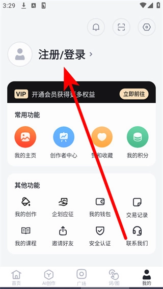 在个人中心页面点击注册登录区域,即可进入手机快捷登录界面。