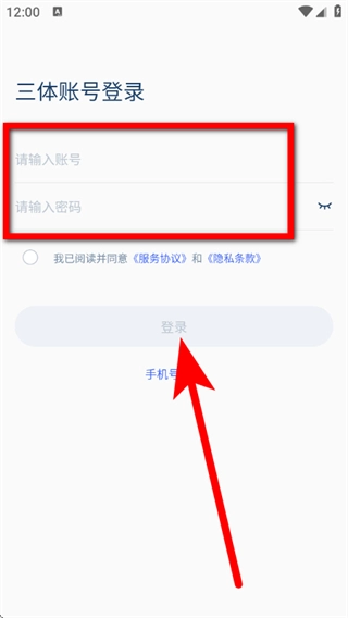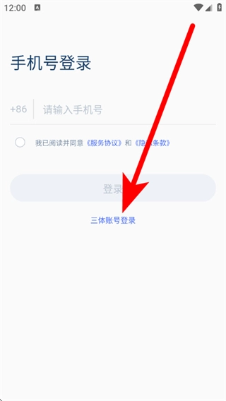 在手机号登录界面,点击三体账号登录选项,即可跳转至三体账号登录页面。