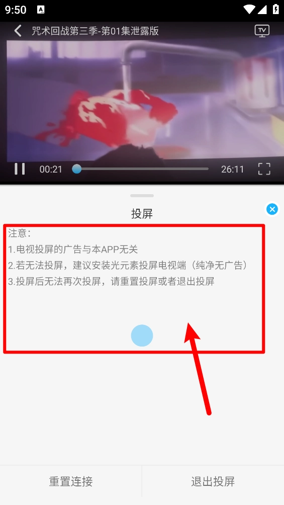 打开进入播放详情页,点击右上角"tv"图标。