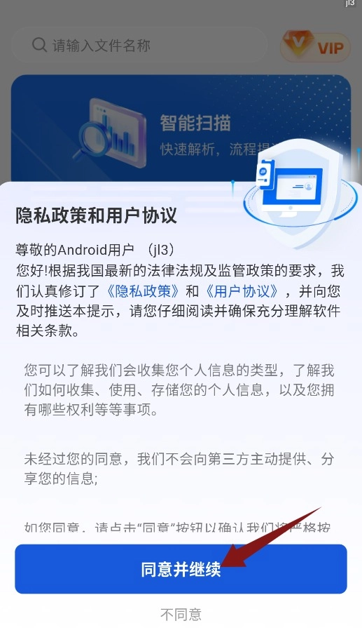 首次打开应用时,需要点击同意隐私政策和用户协议,确认后才能进入应用。