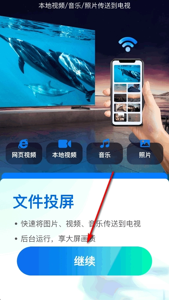 《手机投屏》是海南长留网络科技有限公司开发的一款能将手机屏幕实时投射至电视、电脑的软件,可同步显示手机屏幕内容,具备低延迟、高画质的特点,助你沉浸式体验直播观看、游戏畅玩、短视频浏览等场景;同时支持本地视频、音乐、照片、文件等多种内容投屏到电视,在后台允许的情况下,尽情享受大屏带来的优质画质。