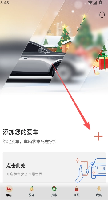 来到软件首页,点击车辆页面添加爱车。
