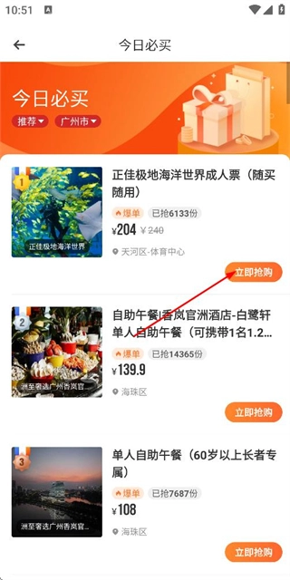 在首页的热销排行榜里点击目标商品,就能进入今日必买页面。